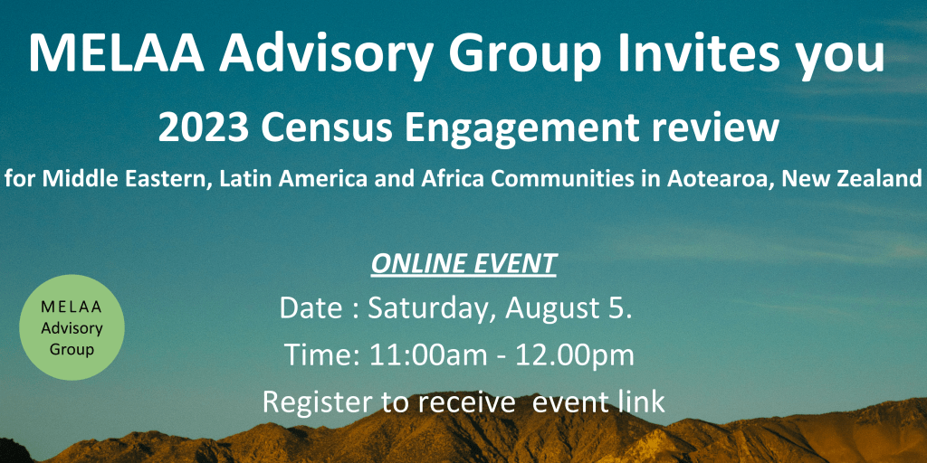 The MELAA Census 2023 hui will be YOUR chance to join in a lively and frank discussion with MELAA communities around Aotearoa-NZ and to meet the members of the MELAA Advisory Group and our Census 2023 survey team.